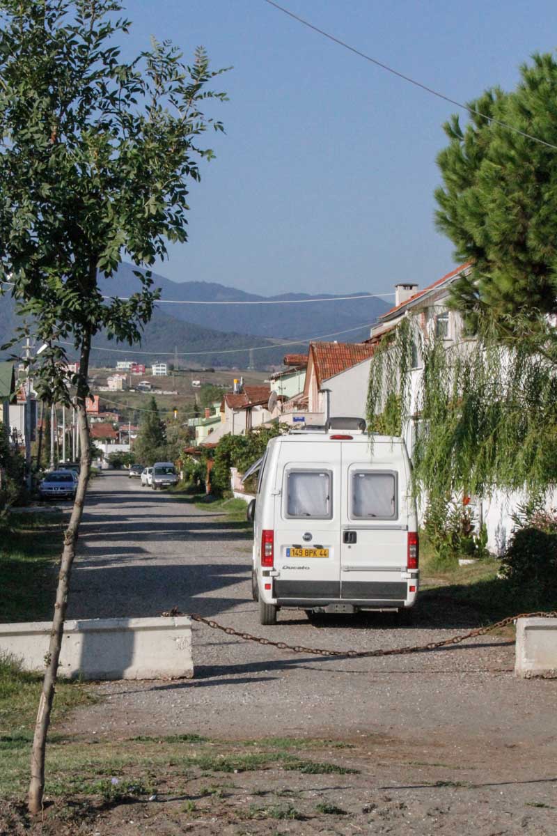 Nous interrogeons les gens qui habitent là (des retraités assez aisés, pour la plupart) et tous, très aimablement, nous invitent à stationner devant chez eux. Ils nous offrent même du poisson frit et des figues ! Quelle gentillesse…