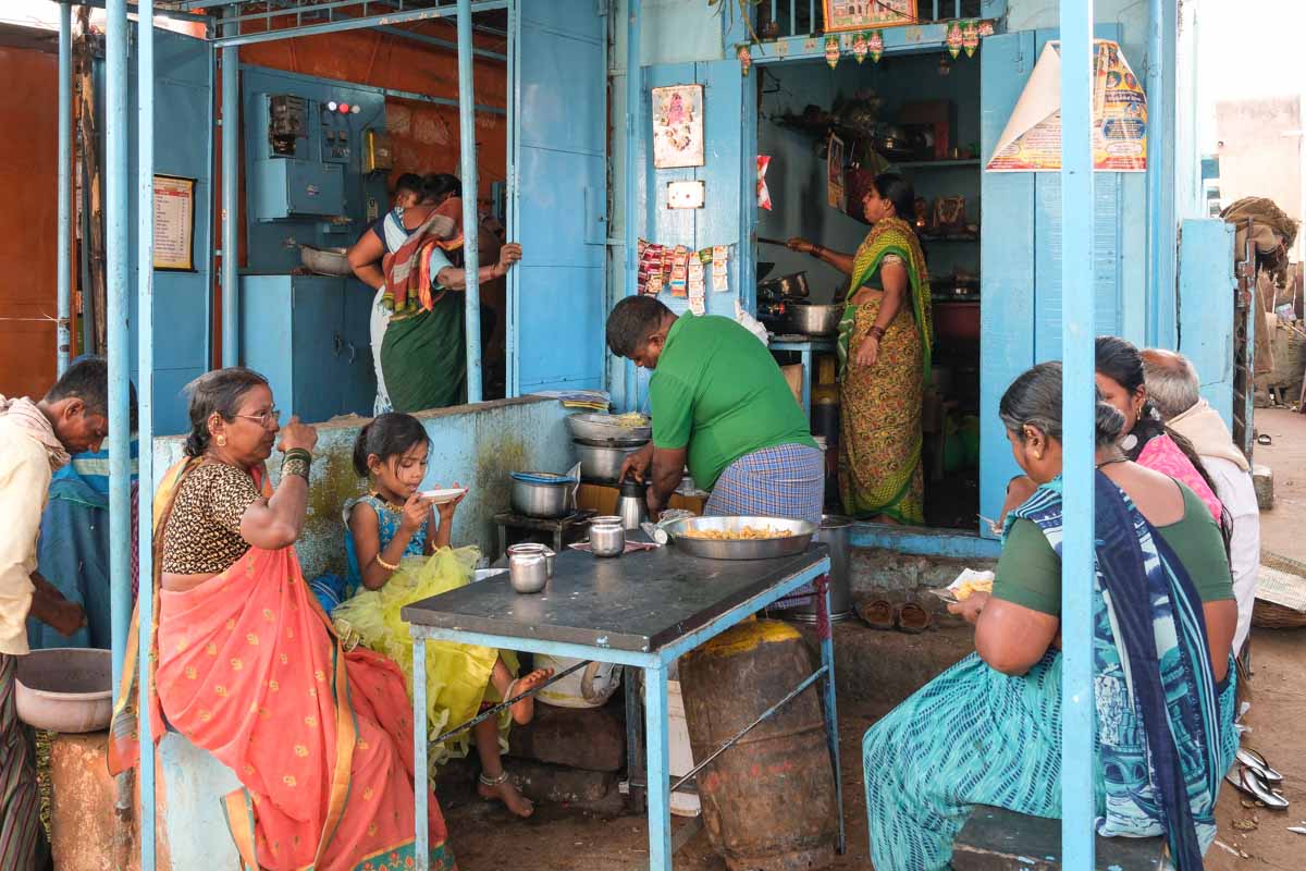 La gare se trouve à 5 km, nous prenons donc un rickshaw pour nous rendre à l’hôtel Rajsangam.