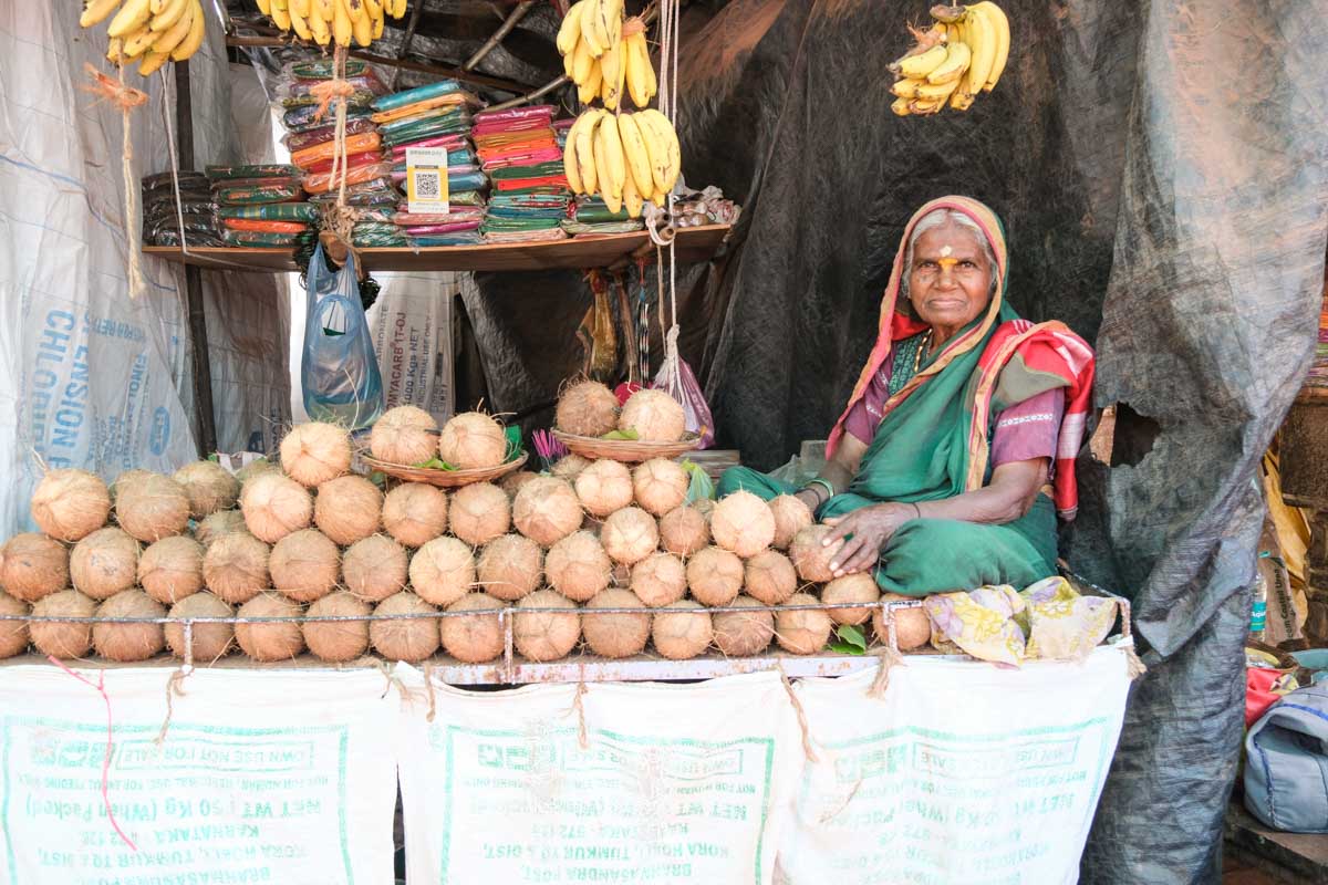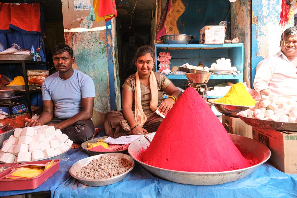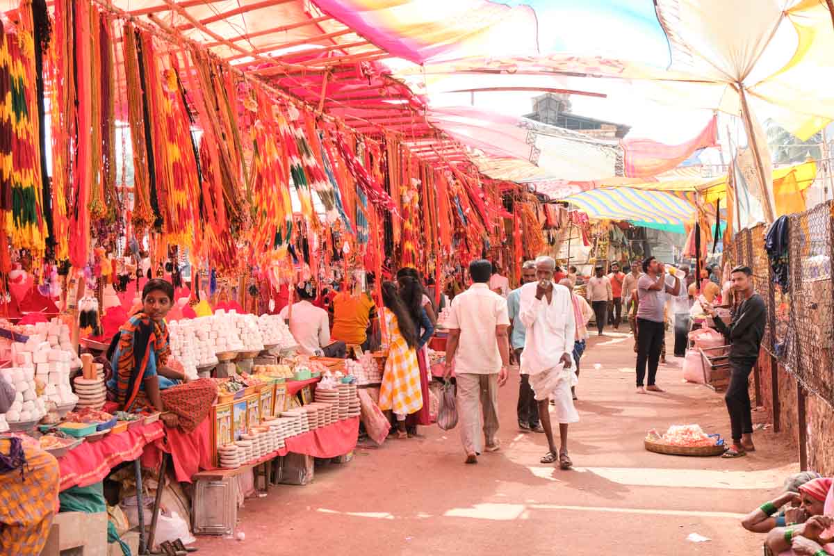 Ce temple, situé à Cholachagudda, est précédé d’un immense marché très animé. Sans doute est-ce parce que nous sommes en période de festival qu’il y a autant d’animation… En tout cas, ça nous plait bien … Nous retrouvons enfin la folle ambiance de l’Inde hindoue !