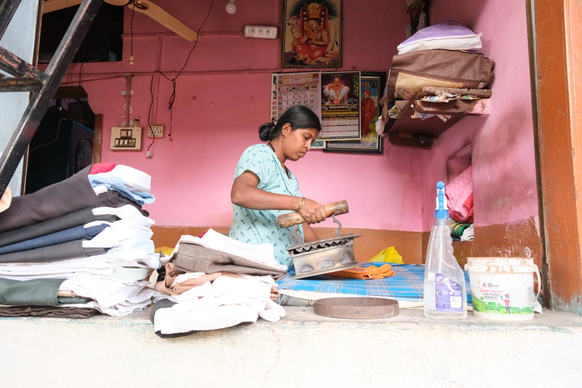 Une repasseuse dans sa minuscule échoppe