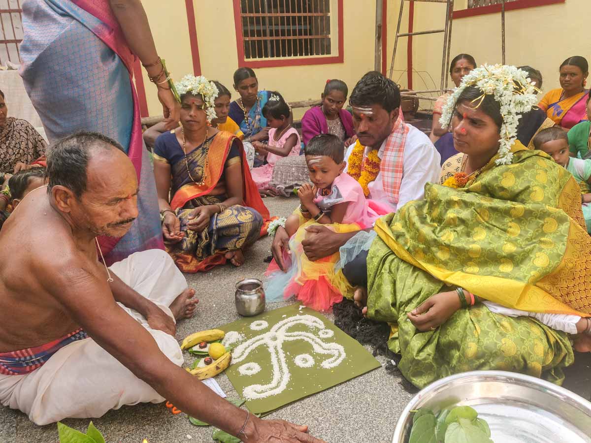 Dans la cour du temple, se déroule une cérémonie appelée « Chudakarana » ou « Mundana »
