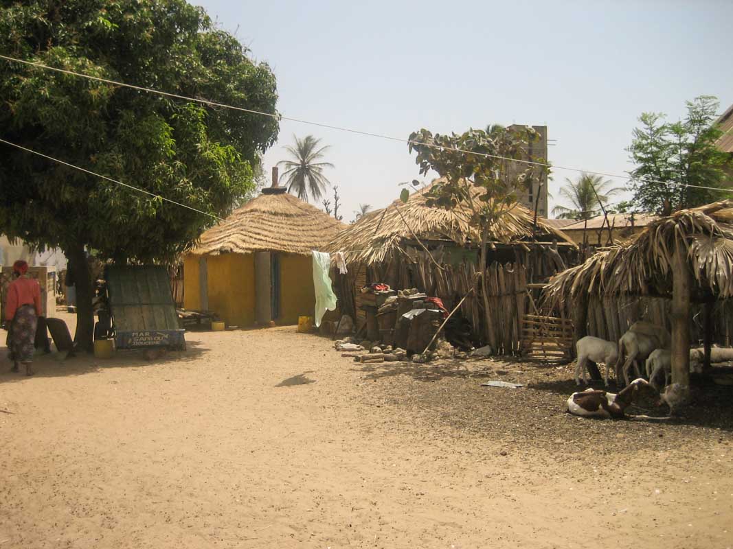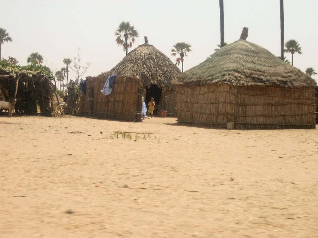 En cours de route vers Joal Fadiouth, nous croisons des villages de huttes
