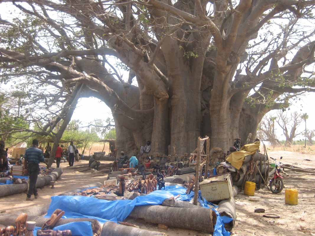 Autour de l'énorme baobab, les marchands de souvenirs ont installé leurs stands