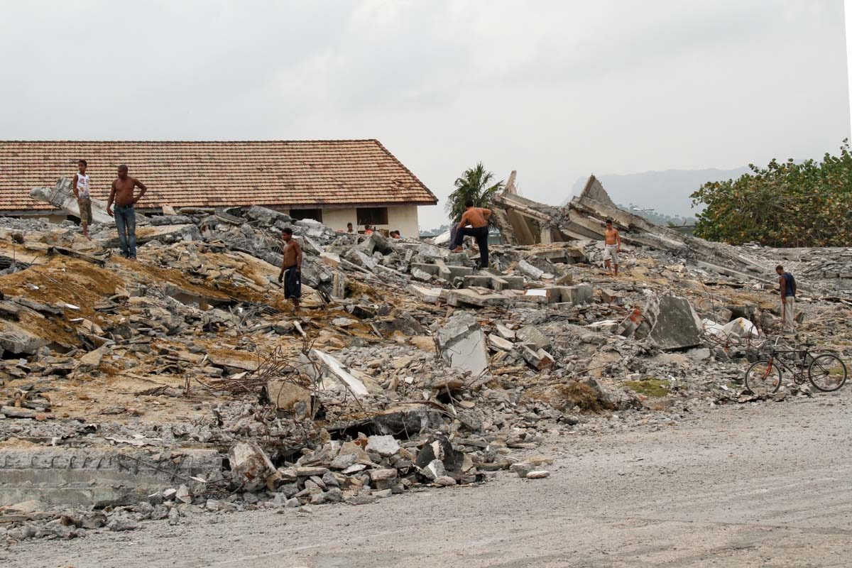 Notre première impression est plutôt bizarre : un gros tas de décombres se trouve là, nous apprenons qu’il s’agit d’une école qui a été détruite par un cyclone.