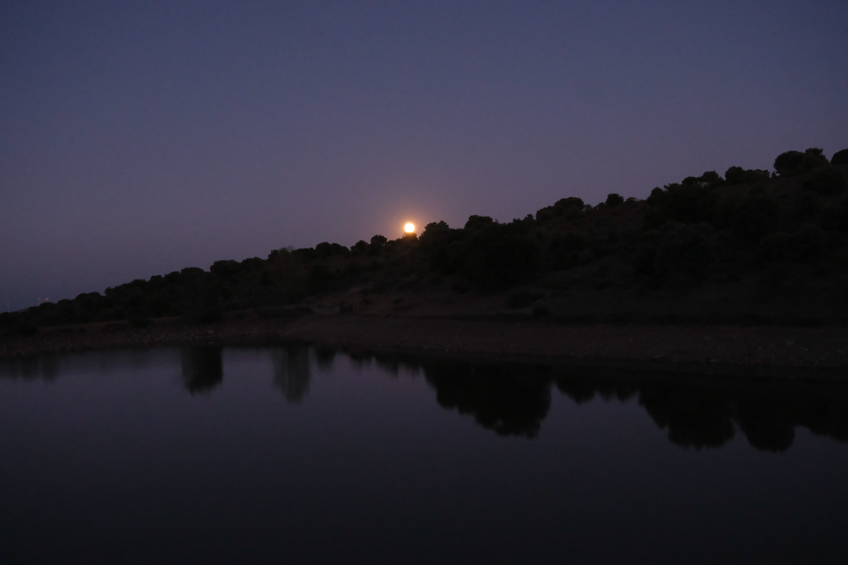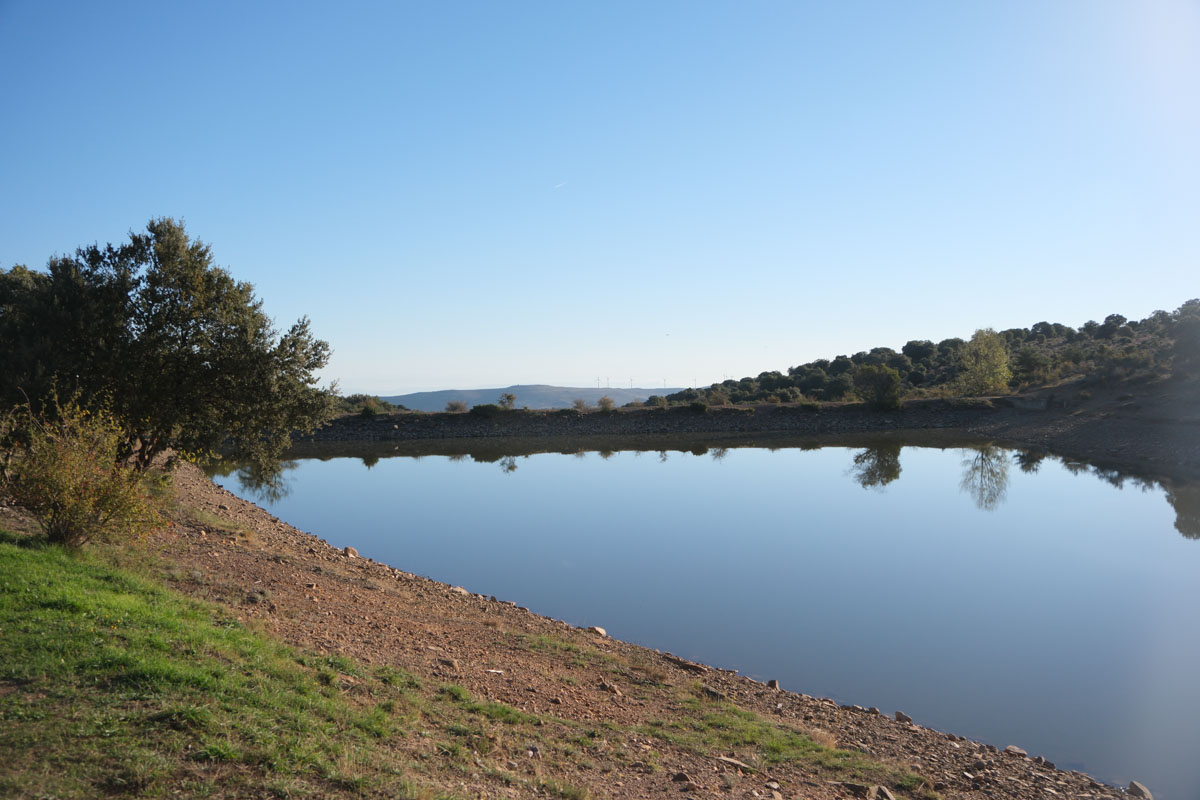 Un joli coin au bord d’un étang entouré de collines boisées. Nous y sommes tout seuls … tranquillité absolue.