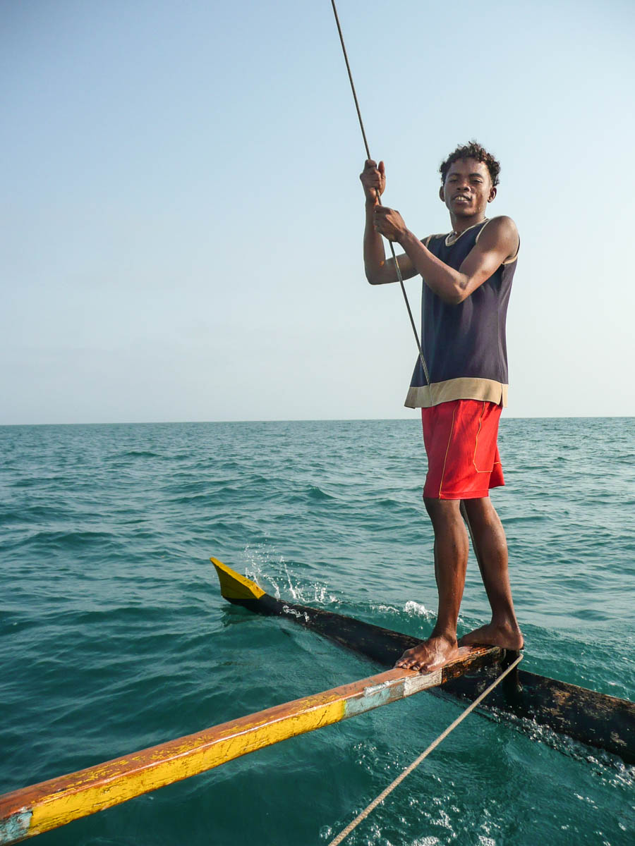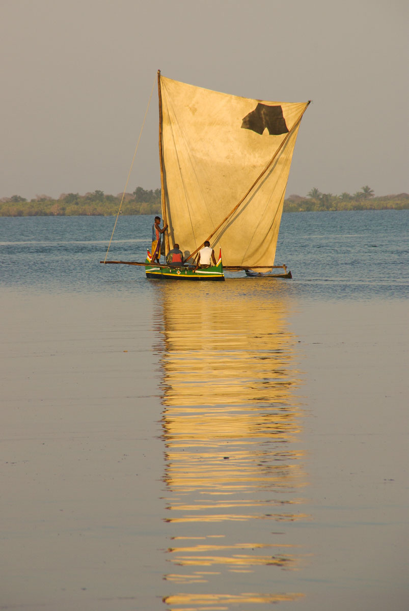 On ne se lasse pas d'admirer le spectacle des pirogues à voile qui rentrent de la pêche poussées par les alizés ... Au Dauphin, nous sommes aux premières loges...
