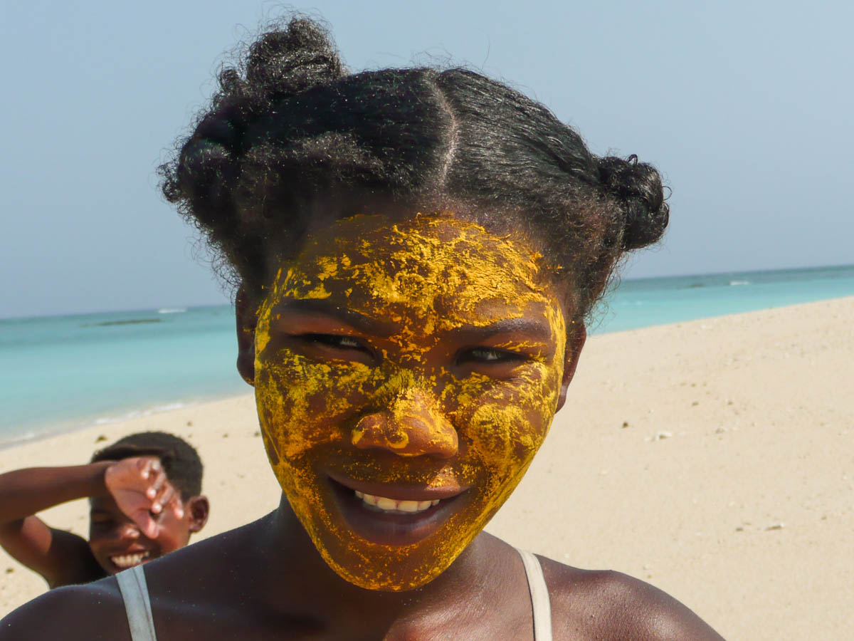 Les femmes et les enfants, sur la côte, se mettent souvent de la pulpe d'une plante écrasée sur le visage ...