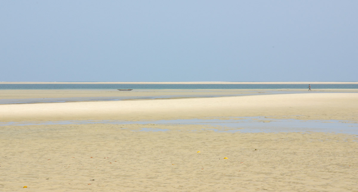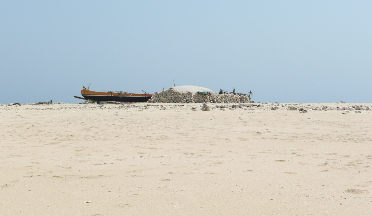 Après 3h de navigation, nous accostons un banc de sable solitaire où, malgré l’extrême dénuement du lieu, des familles de pêcheurs vivent une partie de l’année.