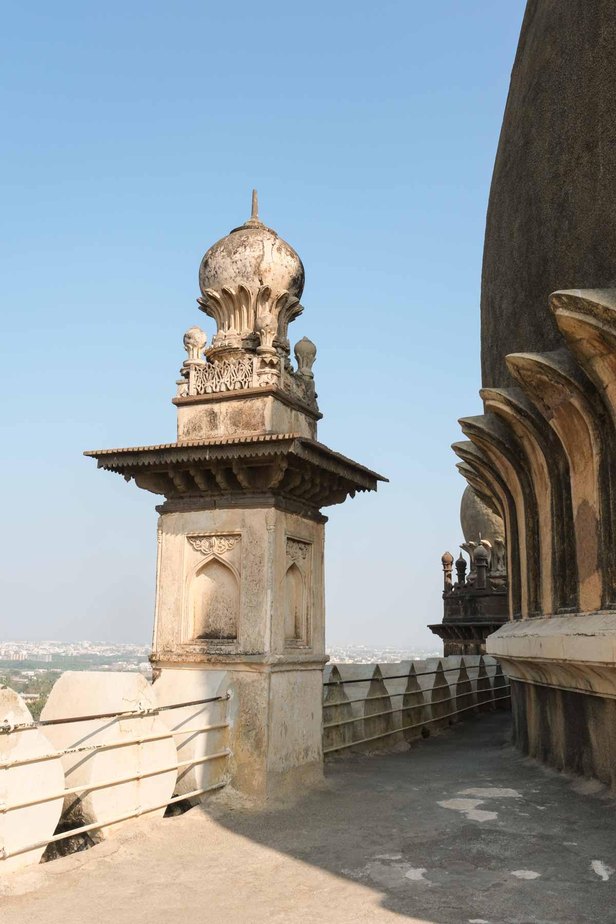 Nous nous rendons à pied de l’hôtel jusqu’à Gol Gumbaz où nous arrivons vers 9 heures. Nous avons bien fait de venir de bonne heure car il n’y a encore que très peu de visiteurs.