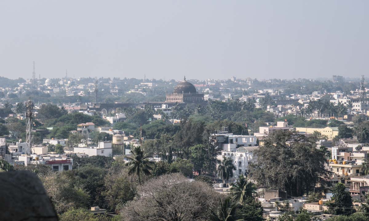 Ce qui contraste avec la grande avenue qui passe devant l’hôtel et qui mène à Gol Gumbaz, tout près.