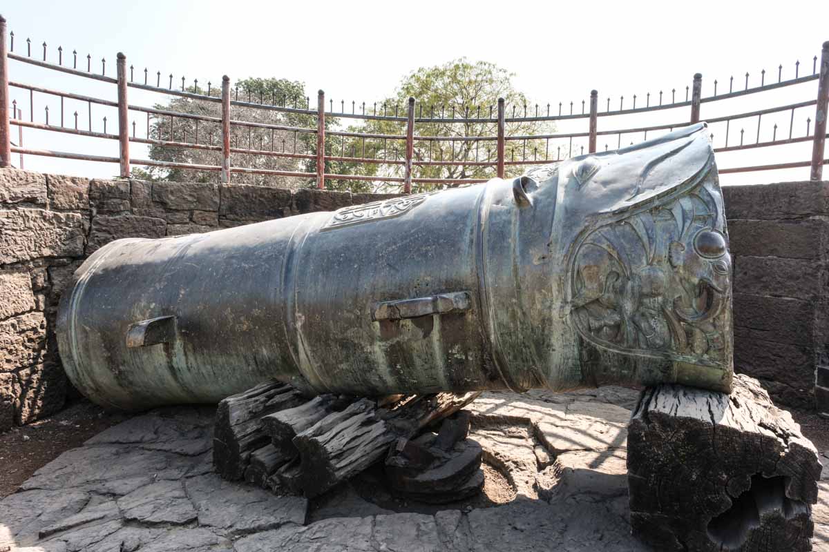 Fondu en 1549, il aurait été tracté par 10 éléphants, 400 bœufs et des centaines d’hommes jusqu’à Bijapur comme trophée.