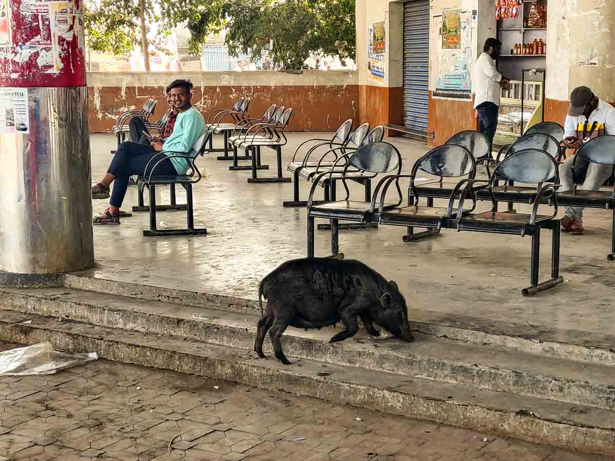 Un cochon fait le ménage dans la gare routière de Gulbarga !