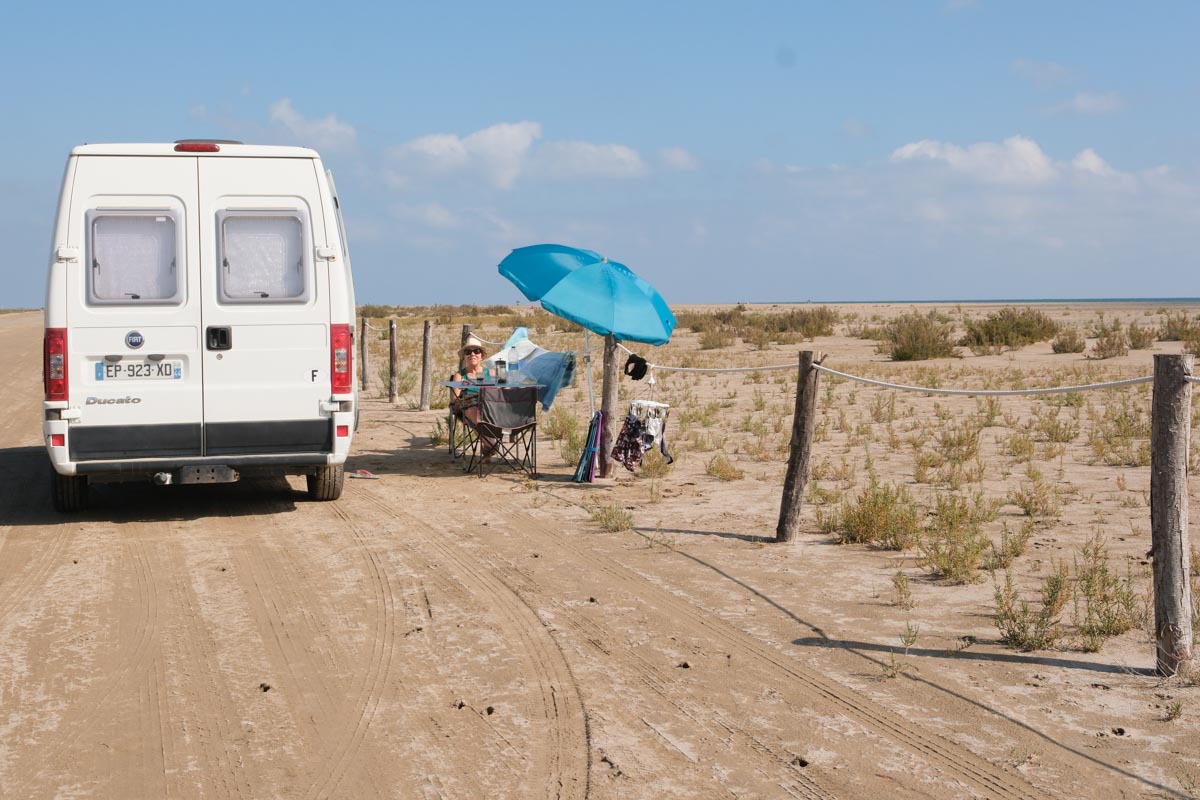 Très longues plages … Beaucoup de place, très facile de se garer le long de la plage… La mer est très bonne, la plage presque déserte, nous y passons le reste de l’après-midi… Mais interdit de rester là la nuit ! Dommage !