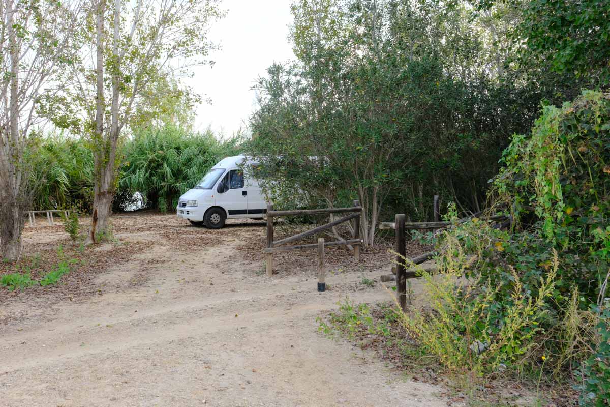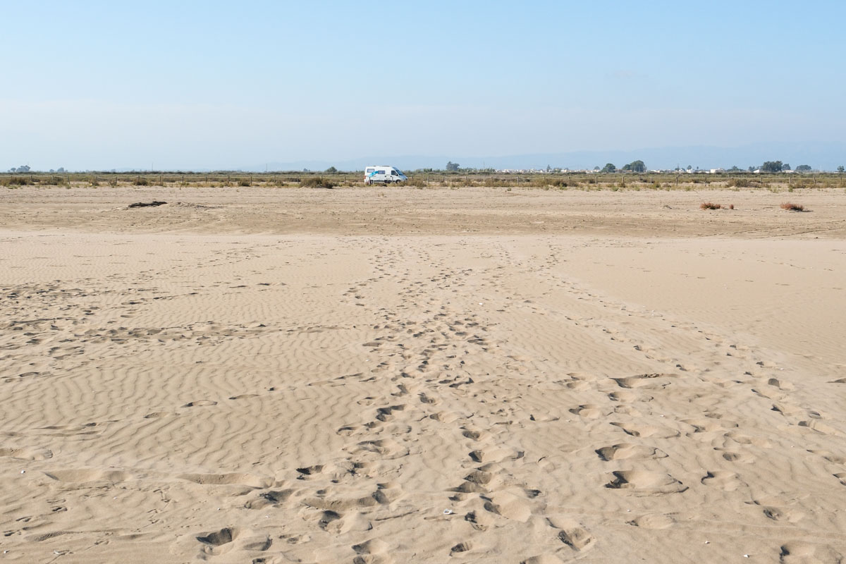 Comme il est interdit de rester le long de la plage la nuit, nous allons nous poser vers Amposta, sur un petit parking aménagé au milieu des rizières.