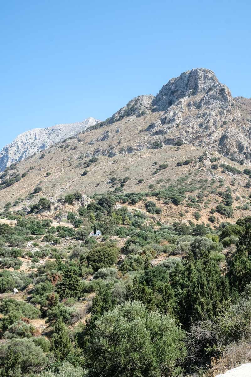 En continuant la route vers Agios Nikolaos, nous traversons un paysage magnifique de montagne aride où poussent chênes verts et genêts.