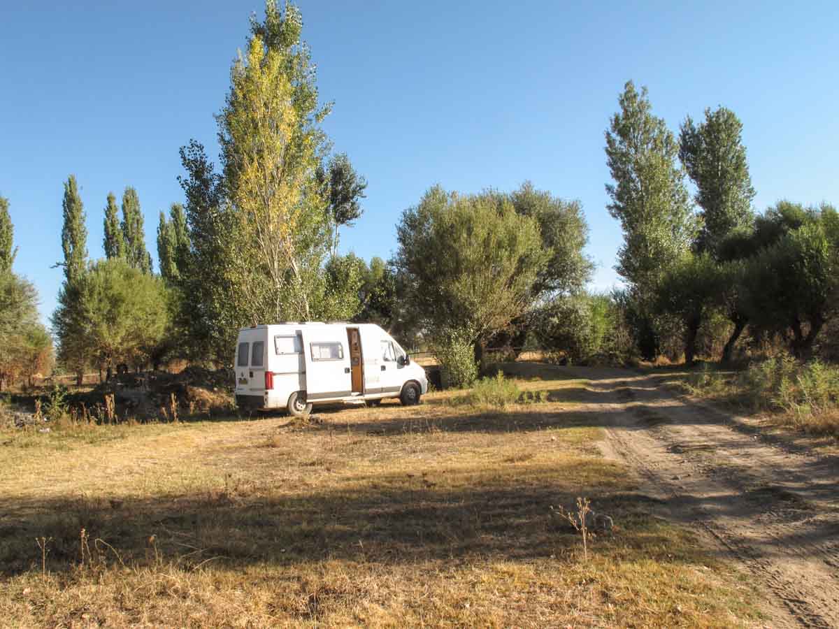 À environ 40km de Sivas, au niveau de Hafik, nous prenons une petite route qui s’enfonce à travers la campagne. Au bord d’un chemin conduisant à un champ, nous trouvons un endroit bien plan.