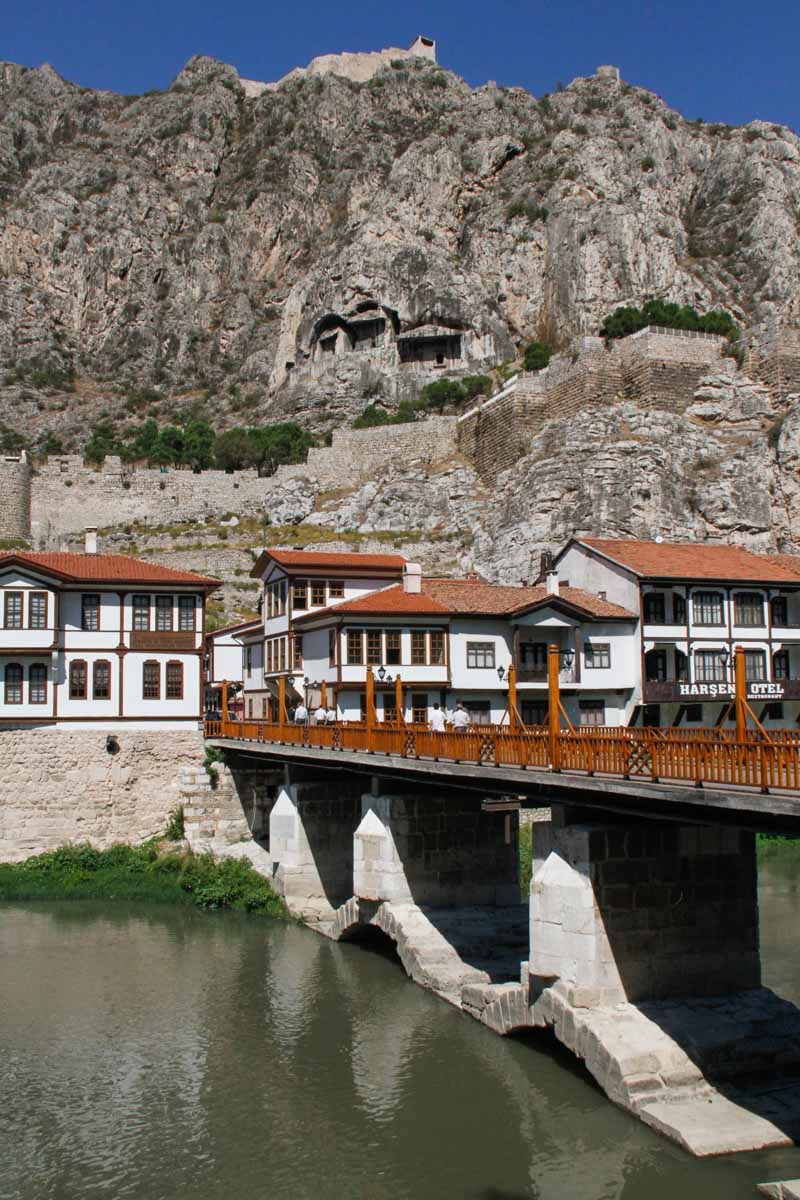 Les belles maisons ottomanes surplombent le cours d’eau et, dans la falaise, on peut voir les cavités creusées dans la roche qui abritaient les tombeaux des rois du Pont (IVème s av JC).