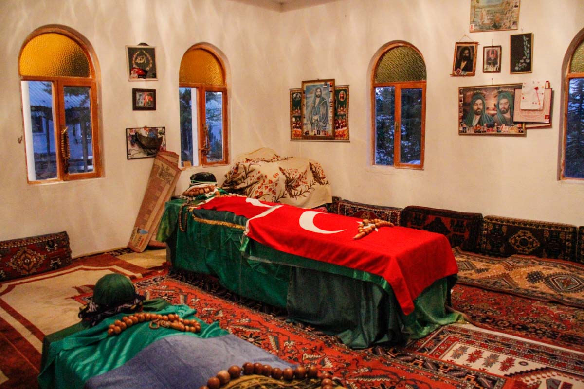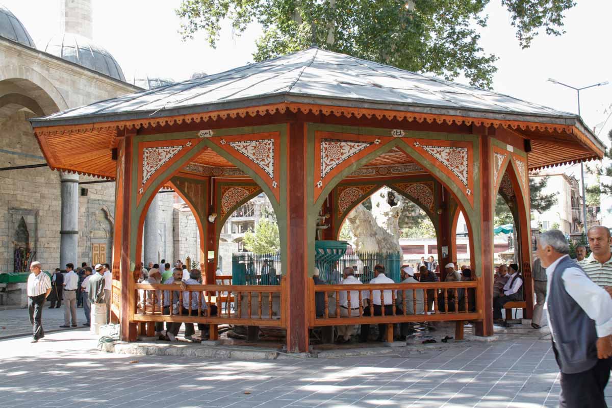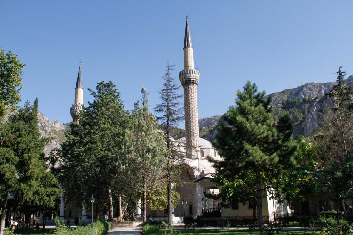 On l’atteint par une petite rue tortueuse qui serpente entre les pins. La vue sur la ville est très belle et, là-haut, il y a un bon vent frais, ce qui change de la chaleur étouffante des rues étroites et pleines de monde d’Amasya.