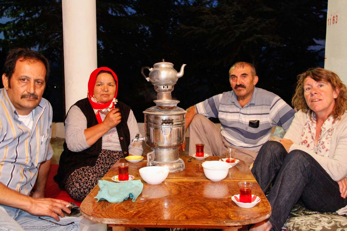 Et nous voilà bientôt à savourer un délicieux repas sur la terrasse devant leur maison, où se trouvent, bien sûr, le barbecue et le samovar, ustensiles indispensables à la vie turque.