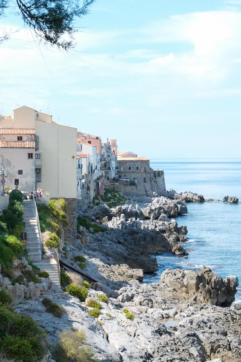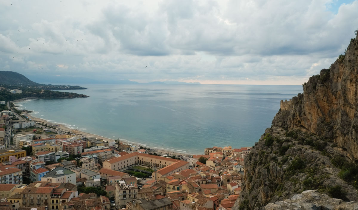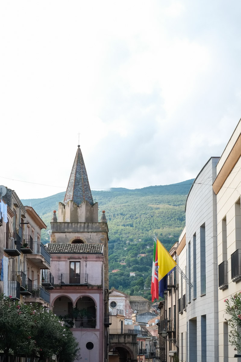 Dimanche 27/09/2015 : Après un bon bain dans la mer transparente, nous quittons le camping de Capo Milazzo vers 11h pour nous rendre àTindari où nous pensions nous arrêter pour déjeuner au bord de la plage… Mais, impossible d’y accéder, les rues sont barrées à cause d’une fête. Un peu plus loin, c’est le marché qui nous empêche de passer…