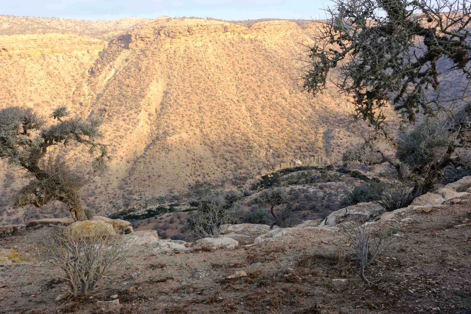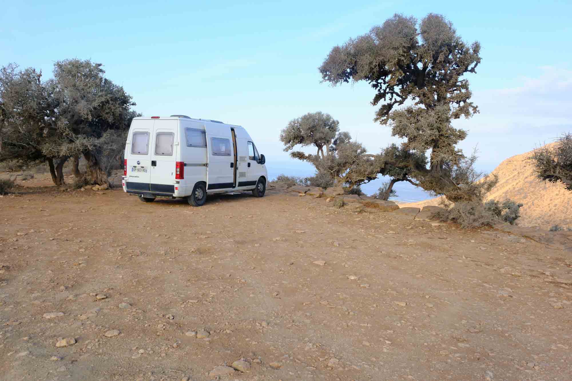 Un petit renfoncement sous les arganiers nous offre un abri pour la soirée et la nuit.