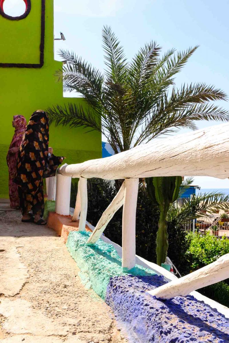 Pour y arriver, il faut emprunter une route en lacets qui descend assez raide jusqu’au petit port de pêche. Derrière la longue plage, s’alignent de petites maisons blanches et bleu tout le long de la promenade. Pas grand-monde ici … C’est très calme