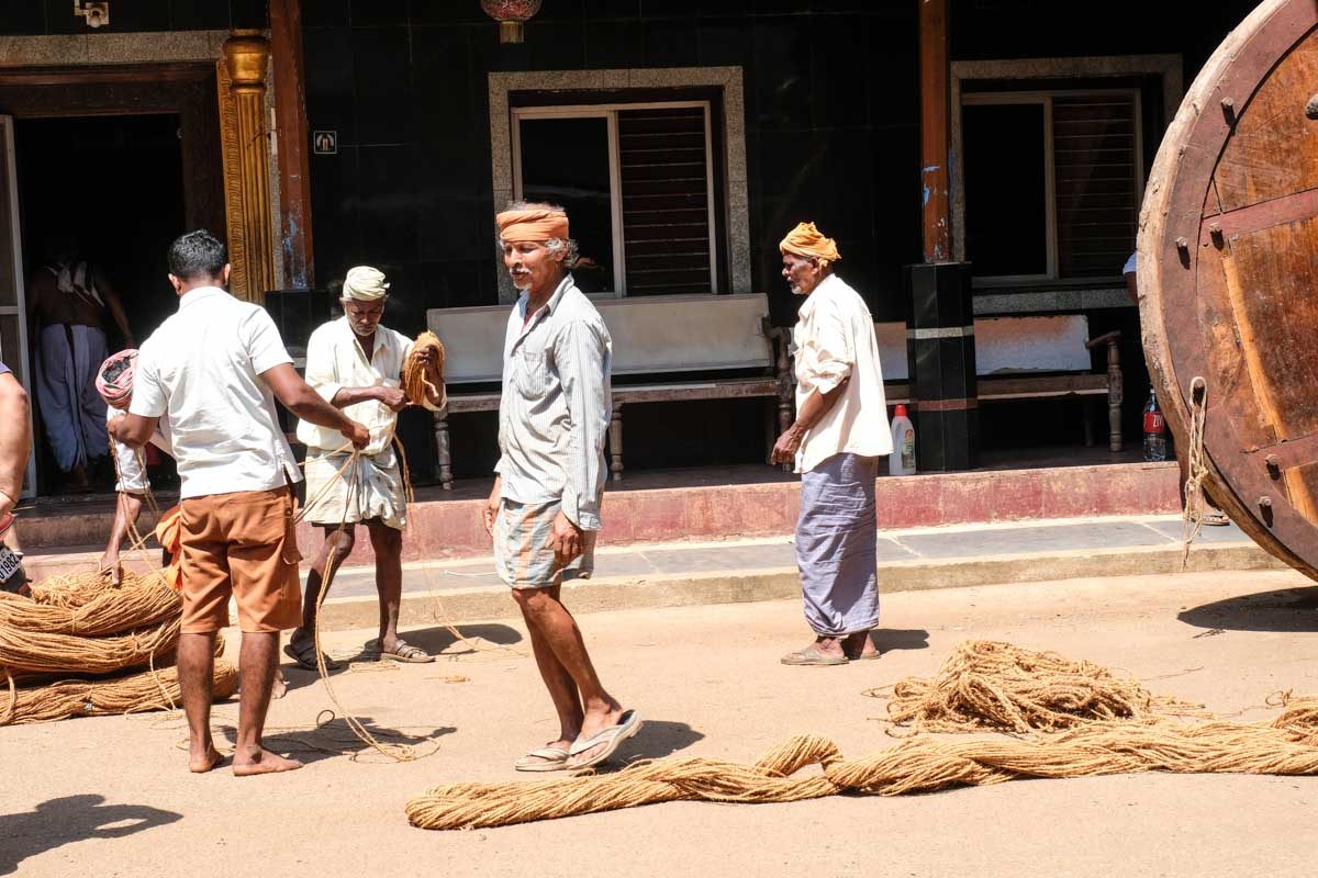 Préparation du char pour le défilé de Shivaratri