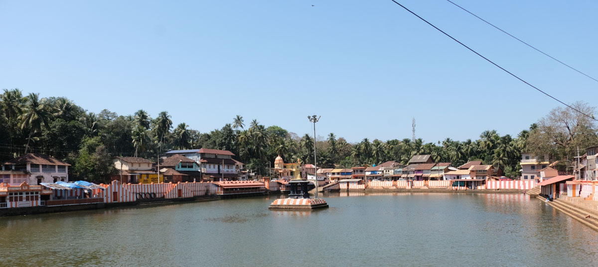 Nous y étions déjà venus l’année dernière (voir Inde 2018). Ici, il y a beaucoup de touristes occidentaux, bien sûr, mais Gokarna ne se résume pas qu’à une station balnéaire. Il y a le village avec énormément de temples. Il y en a beaucoup plus qu’on ne le croit car ils sont souvent cachés dans des maisons particulières. Egalement un grand bassin et beaucoup de pèlerins.