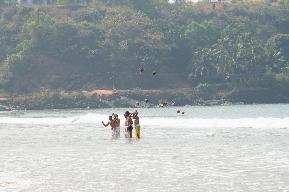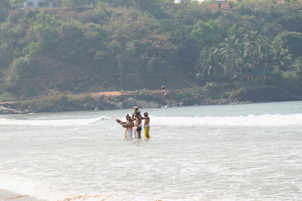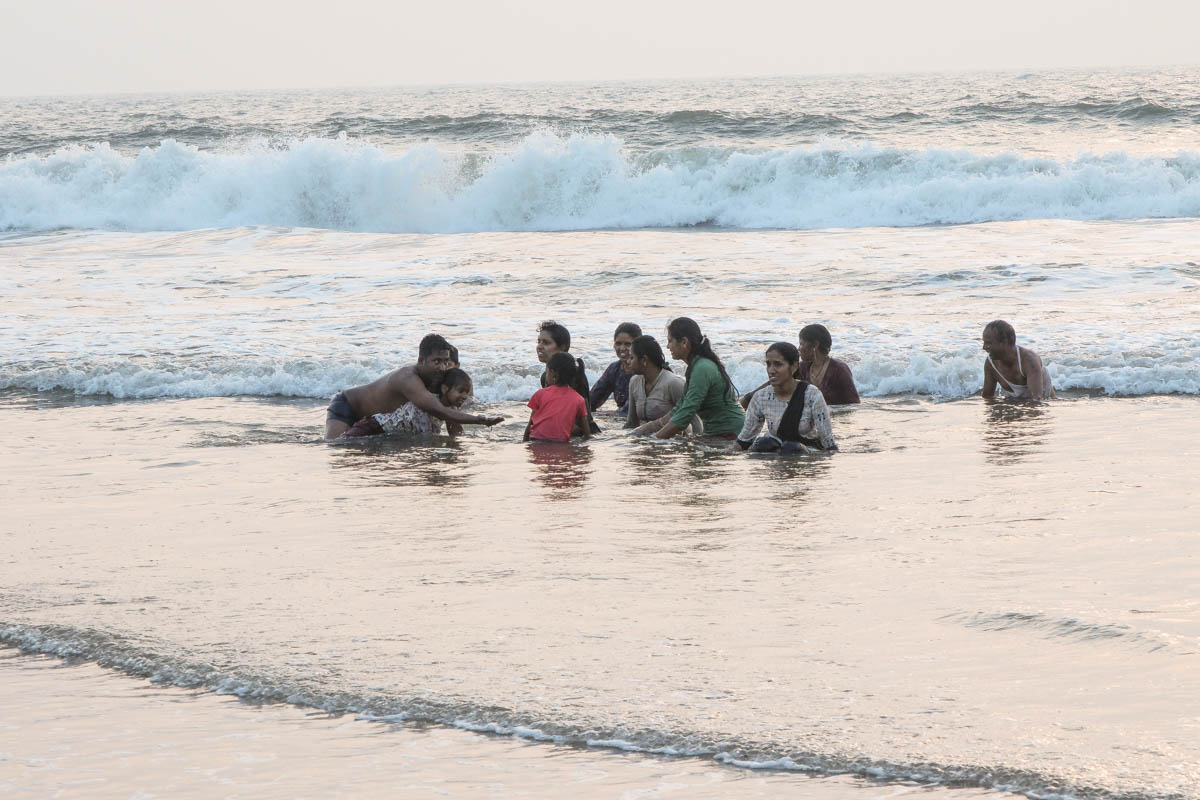 Après cette longue route, nous retrouvons avec plaisir la plage de Gokarna et ses joyeux baigneurs et baigneuses (tout habillées mais, cette année, nous voyons des jeunes Indiennes vêtues de jeans moulants et t-shirts et même de shorts !)
