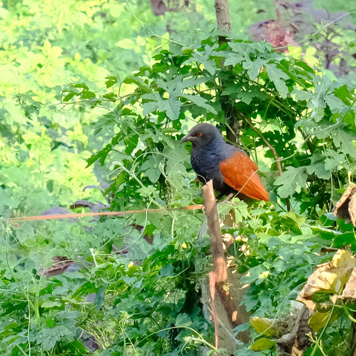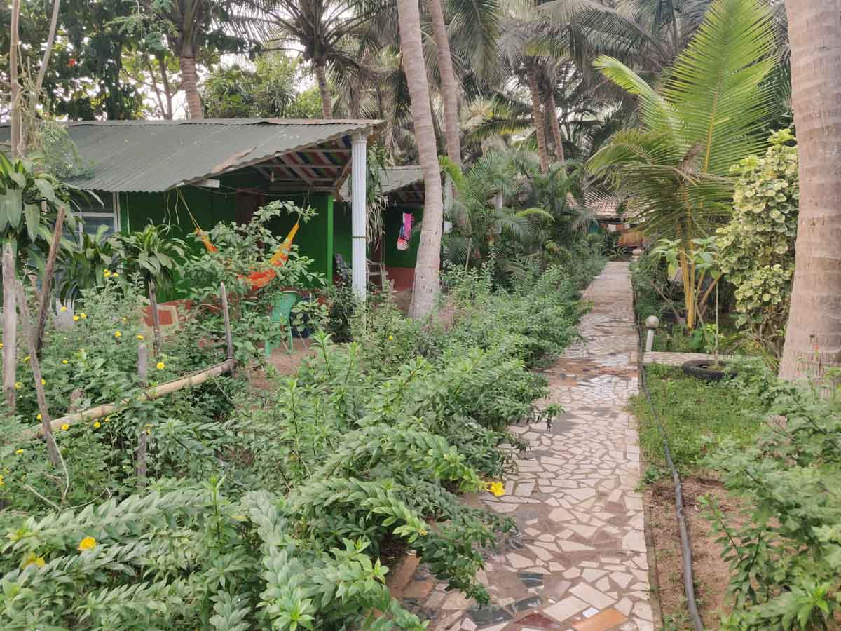 Nous y retrouvons notre bungalow au fond du jardin et nous dépêchons d’accrocher notre hamac sur la petite terrasse. Elle donne sur des jardins cultivés et des grands arbres habités par de nombreux oiseaux.