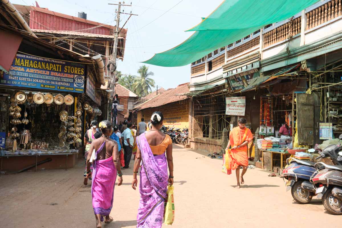 Le village n’a pas beaucoup changé depuis la dernière fois où nous sommes venus. Sauf que les magasins ne présentent plus de vêtements style occidental baba mais surtout des vêtements qui plaisent plutôt aux Indiennes. Il y a, en effet, beaucoup plus de touristes indiens désormais et surtout des jeunes couples ou des groupes de jeunes. Les personnes plus âgées viennent, elles, en pèlerinage dans les nombreux temples de Gokarna.