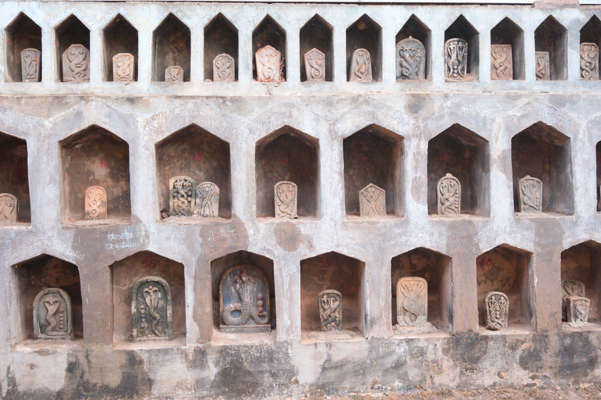 Statuettes de serpents dans des niches près du Sri Naageshwara temple