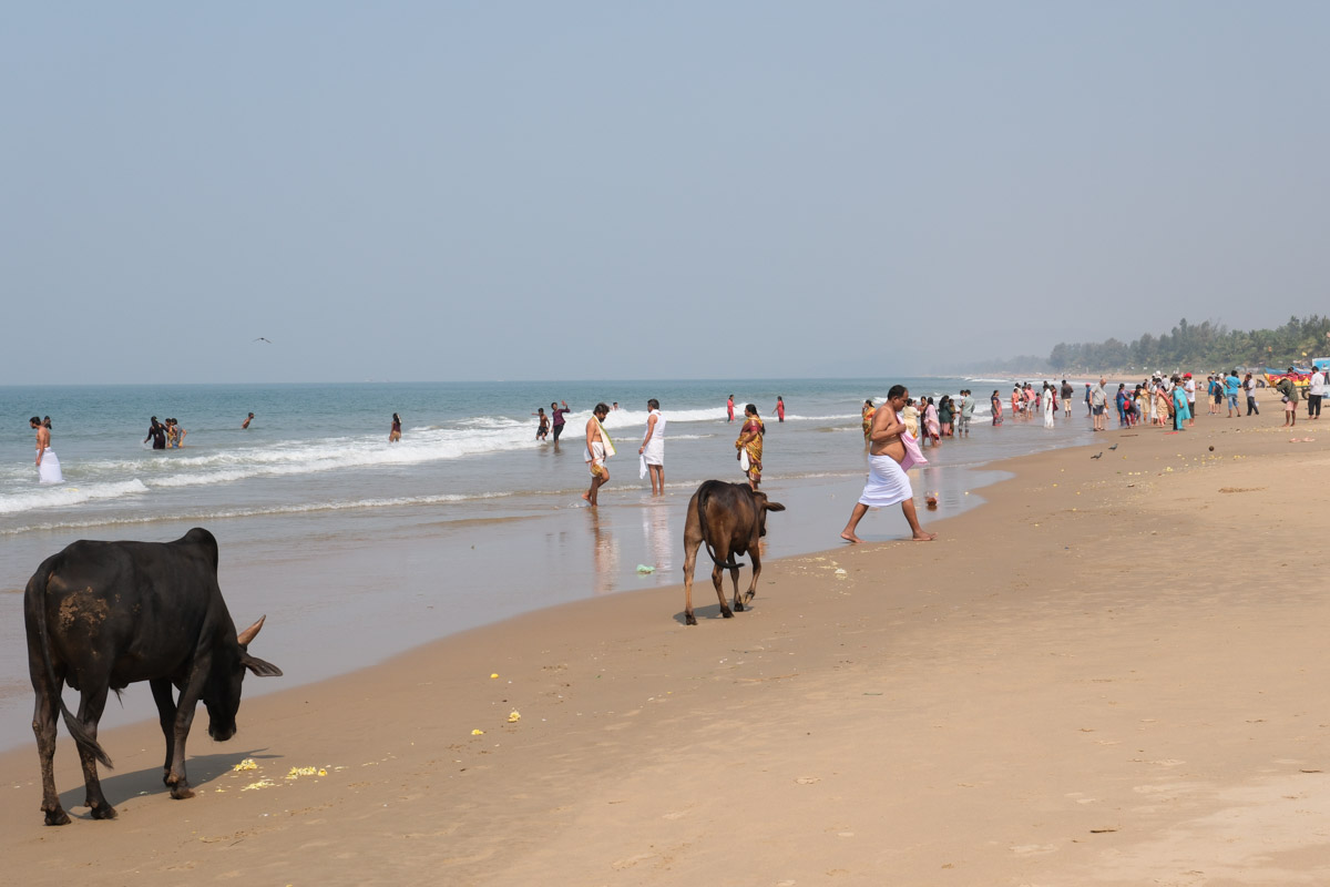 Main beach, partie de la plage face au village, fréquentée surtout par les pèlerins