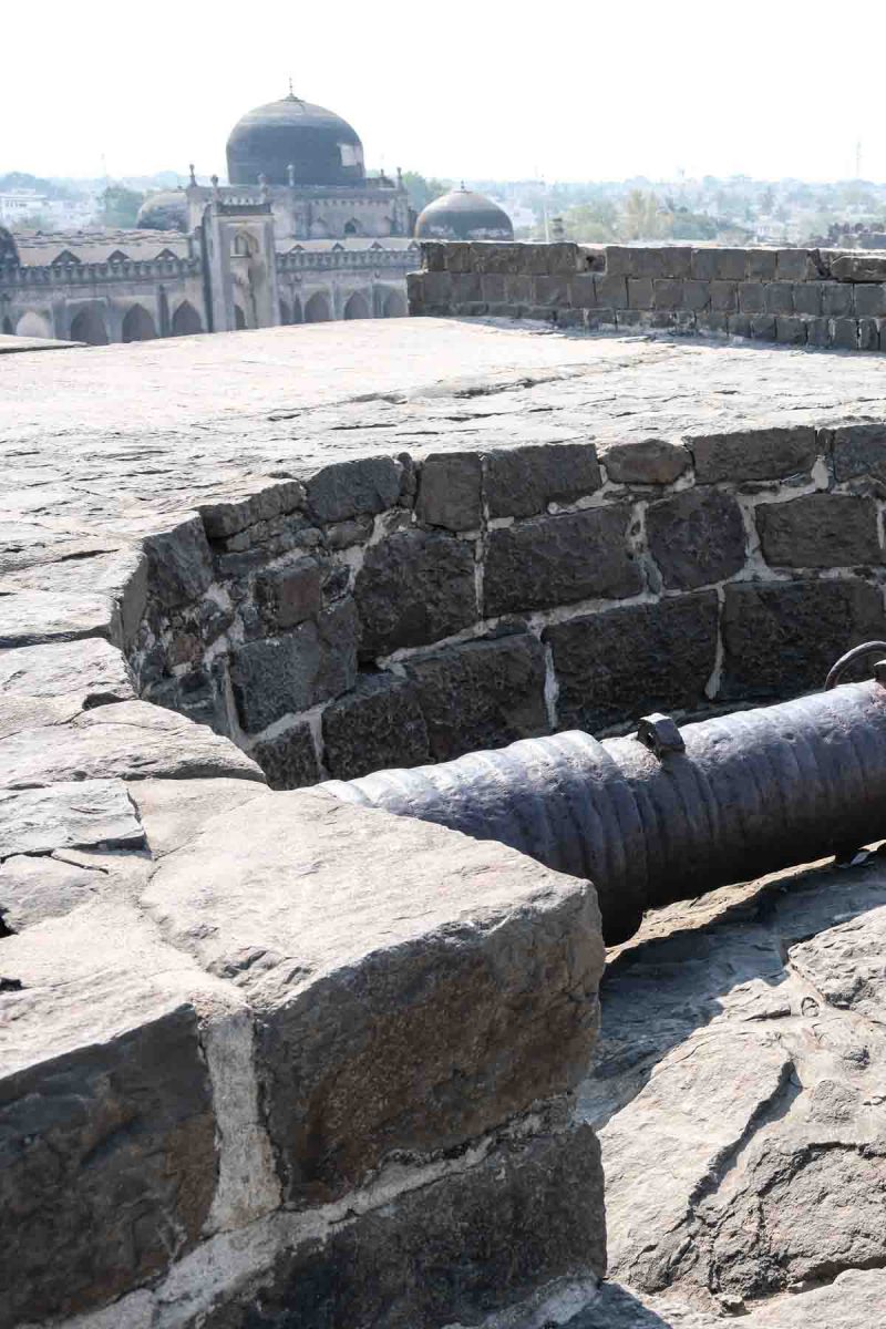 Sur le bastion, un canon et une belle vue sur la mosquée