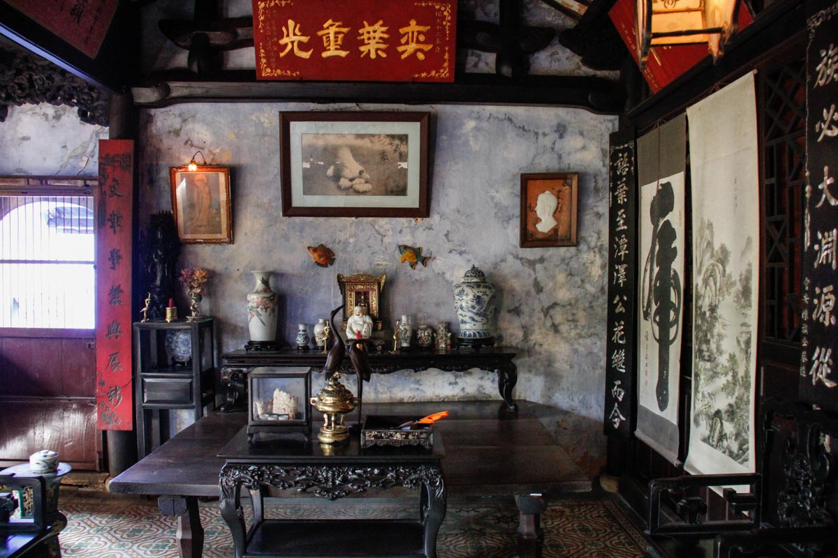 Les inondations étant fréquentes à Hoi An, ces maisons sont soutenues par des colonnes en bois de fer, très résistant, posées sur des bases en marbre.