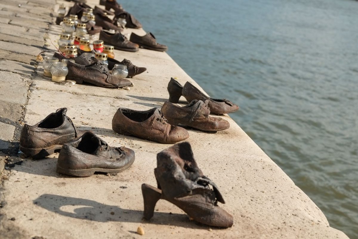 Sur le quai, non loin du Parlement, "Les Chaussures au bord du Danube", sculpture qui rend hommage aux juifs assassinés à cet endroit par les nazis, en 1944.