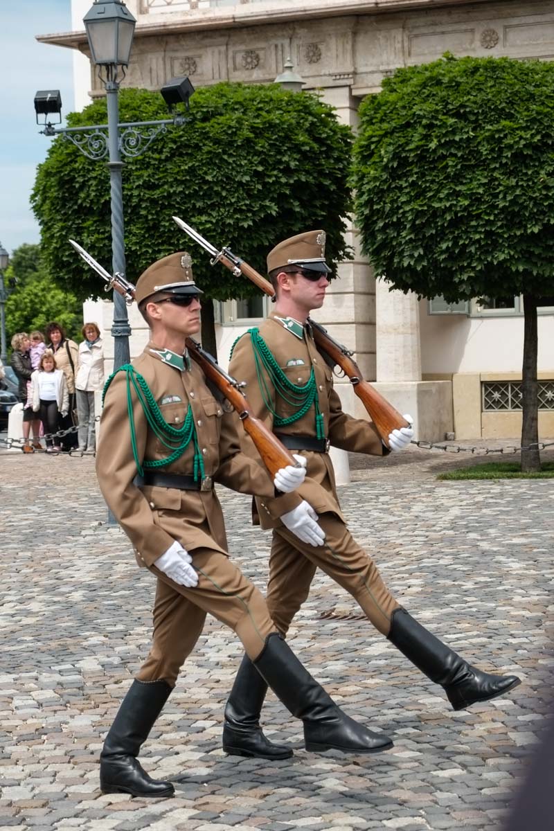 Nous longeons des allées pavées, passons sous des voûtes de pierre et arrivons dans la cour devant le Palais Royal, où, là aussi (comme à Prague), c’est la relève de la garde…