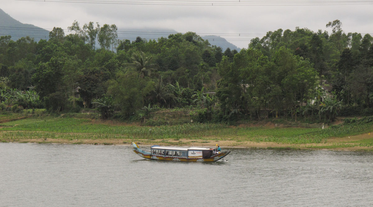 Par la suite, heureusement, la route s’améliore et continue dans de jolis paysages verdoyants. A 12kms de Hué, nous arrivons au :