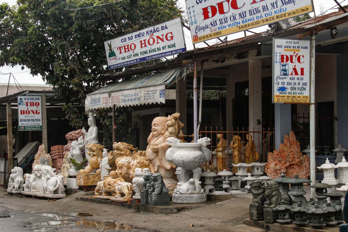Avant d’arriver à Da Nang, le bus fait un petit arrêt à la Montagne de Marbre (où l’on n’a que le temps de voir les nombreuses boutiques de souvenirs en marbre, bouddhas en marbre, etc… )