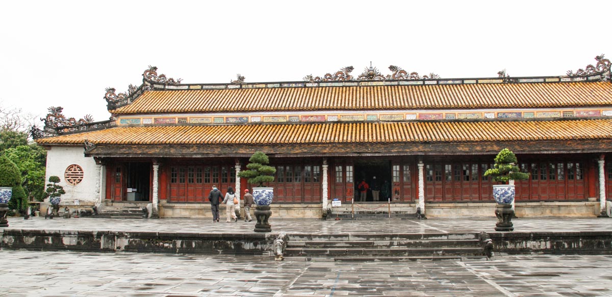 La cité royale a été grandement détruite lors de l’offensive du Têt en 1968. Les bâtiments ayant survécu ont été restaurés avec l’aide de l’Unesco.