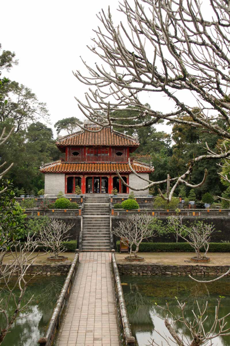 Le ciel est gris mais il ne pleut pas. Nous louons des vélos et partons à la découverte des tombeaux impériaux disséminés dans la campagne, des deux côtés de la Rivière des Parfums.