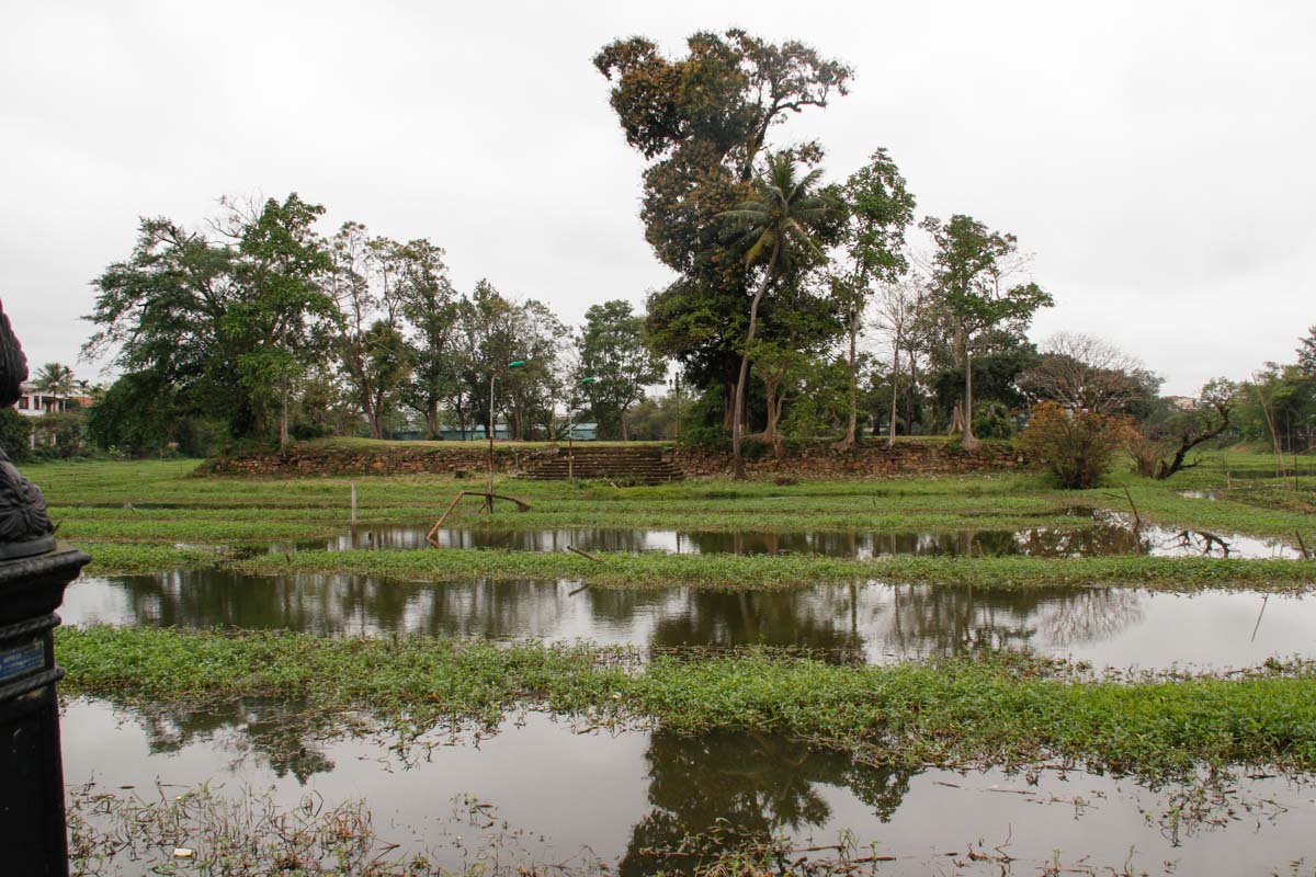 Il nous faut d’abord traverser quelques rues animées des faubourgs puis nous arrivons devant le tertre du Nam Giao. En le contournant par la droite, nous débouchons sur une route de campagne toute en travaux… Donc de la boue, des trous et, en plus, pas mal de circulation.