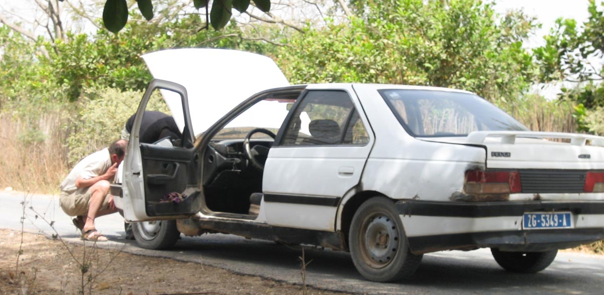 Nous quittons Ziguinchor à 9h30, dans la voiture de Djibril, un chauffeur que nous avions trouvé par l’intermédiaire d’une personne habitant à Pornic et le connaissant depuis plusieurs années.