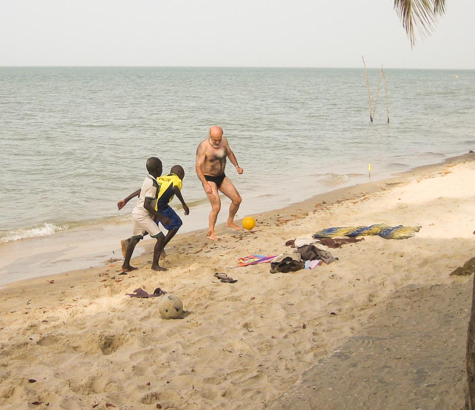 L’après-midi, baignade et partie de foot sur la plage avec les enfants …