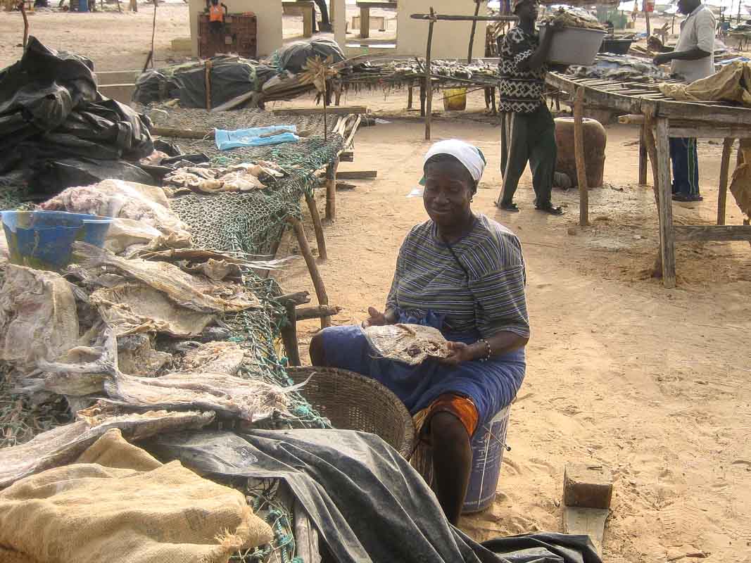 Une grande partie de la plage est occupée par les pêcheurs et les sécheries de poissons