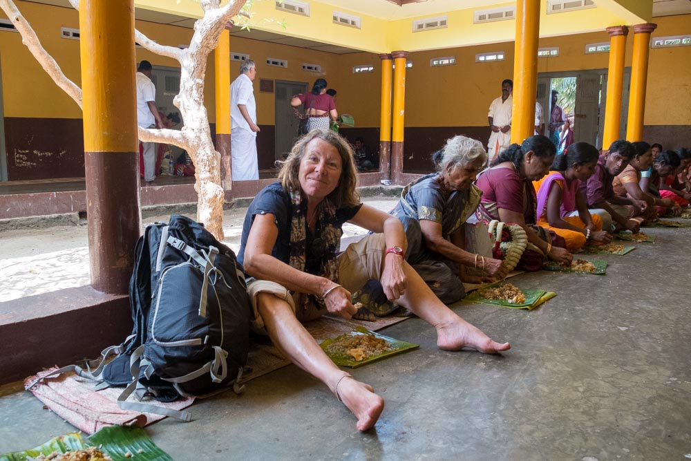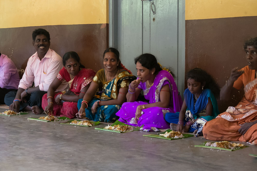 Nous avons même la chance d’assister à un mariage qui se déroule dans un petit temple à côté et participer au repas, assis par terre avec tous les gens présents, à qui on sert, sur une feuille de bananier, du riz et des curries de légumes. On nous offre même du coca !