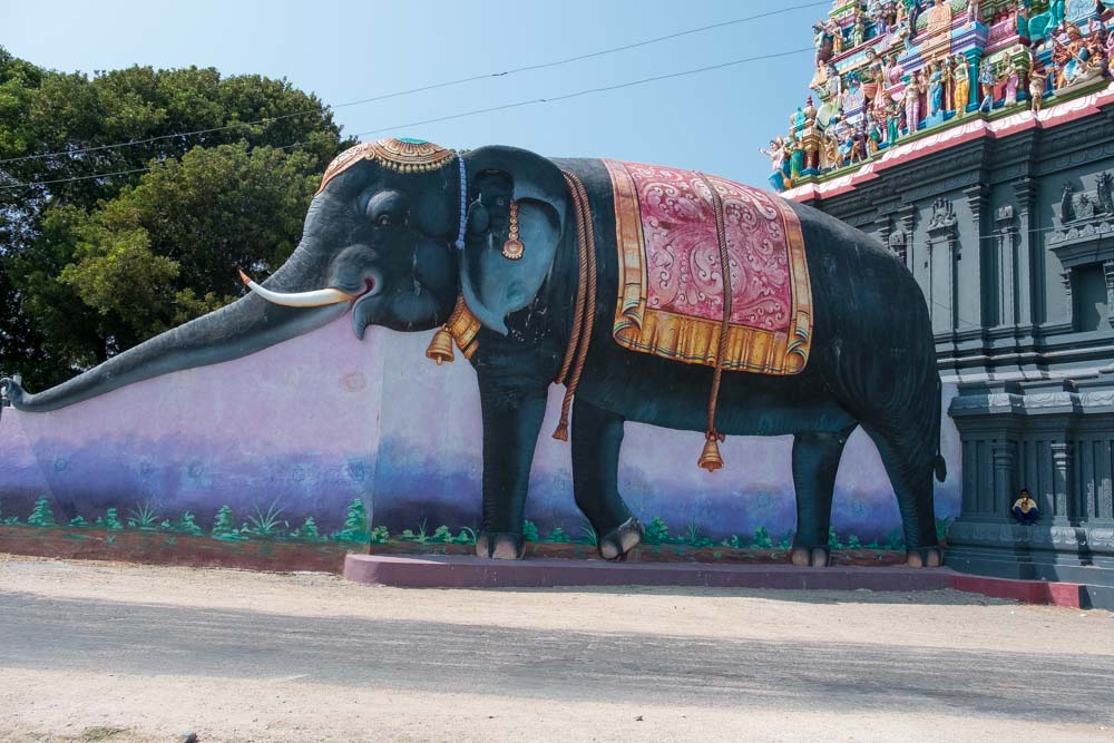 Nous pédalons jusqu’au grand temple hindou « Nallur Kandas Wany Kovil ». Pas question pour Yannick d’y entrer revêtu de son tee-shirt : pour entrer, les hommes doivent être torse nu (mais pas les femmes !!!)… Bon, s’il n’y a que ça pour leur faire plaisir, Yannick va découvrir son torse velu ! …
