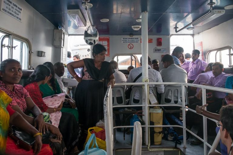 Nous reprenons le bateau à 14h30. Quand nous arrivons à quai, il faut se dépêcher pour avoir une place assise dans le bus qui rentre à Jaffna.