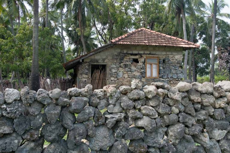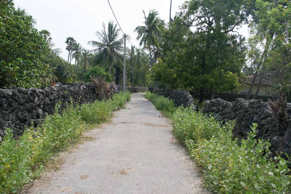 Tous les murets qui entourent les jardins sont faits de corail, ainsi que le fort et les constructions anciennes.