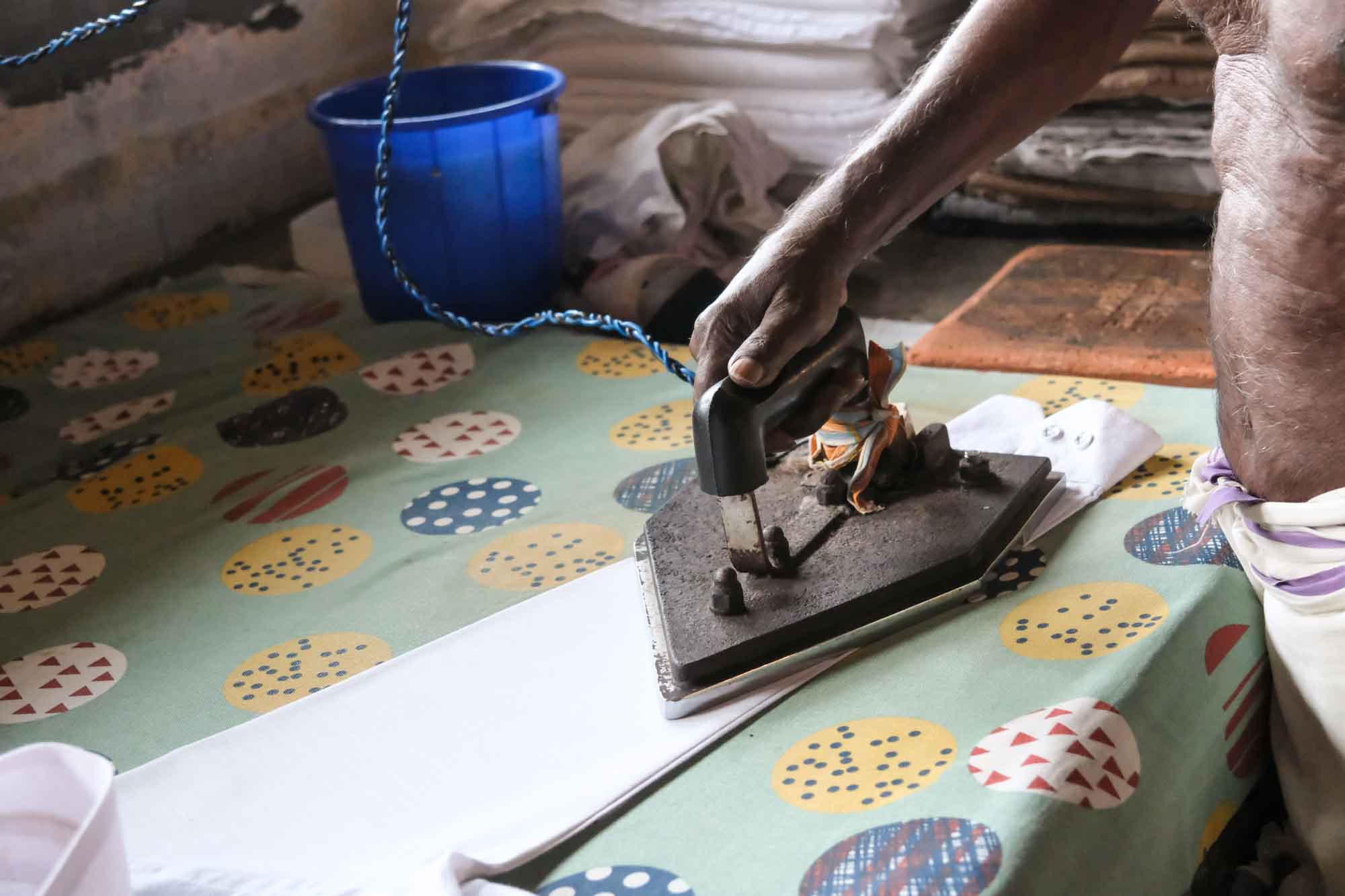 Une fois cette formalité effectuée, nous partons à pied jusqu’à la laverie de Vanyar Sangam. Nous y étions déjà venus l’an dernier mais Yannick voulait y prendre d’autres photos …